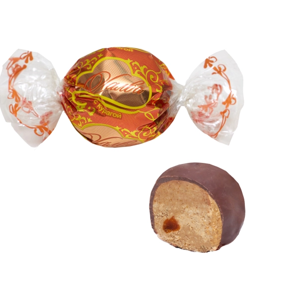 Состав: ядро подсолнечника, сахар, патока, глазурь, курага, экстракт солодкового корня. В 100 г продукта содержится: белков-12,9г, жиров-40,3г, углеводов -41,4г. Энергетическая ценность 100г продукта – 556 ккал/2324 кДж