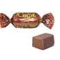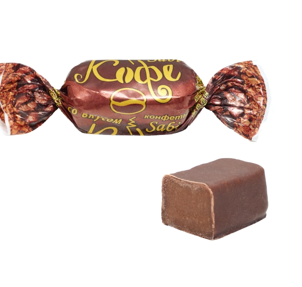 Состав: сахар, патока, глазурь ( сахар, заменитель масла какао нетемперируемый лауринового типа (масло пальмоядровое рафинированное дезодорированное гидрогенизированное, эмульгаторы (Е492), (Е322)), какао-порошок, сыворотка молочная сухая, ароматизатор, эмульгаторы (лецитин соевый (Е322), (Е476), молоко цельное сгущенное с сахаром (цельное молоко, обезжиренное молоко, сахар ), ароматизатор. В 100г продукта содержится: белков - 13,2г, жиров - 27,2г, углеводов - 41г. Энергетическая ценность 100г продукта - 1760 кДж/420 ккал.
