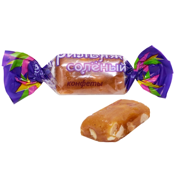 Конфеты выпускаются в форме брусочков. Конфеты сладкие, но соль ощущается, придает пикантности. Любителям арахиса и контрастных вкусов они понравятся. Грильяж твердый, откусывается легко, к зубам не прилипает. Это интересное лакомство для взрослых и детей. Конфеты в полупрозрачной обертке, в коробке, могут быть оригинальным подарок по любому случаю. Производятся по оригинальной рецептуре, из натурального сырья, без применения ГМО продуктов.