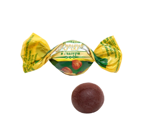 Состав: ядро фундука, шоколадная глазурь (сахар, эквивалент масла какао, тертое какао, какао-порошок, масло какао, лецитин соевый, эмульгатор Е476), ароматизатор).