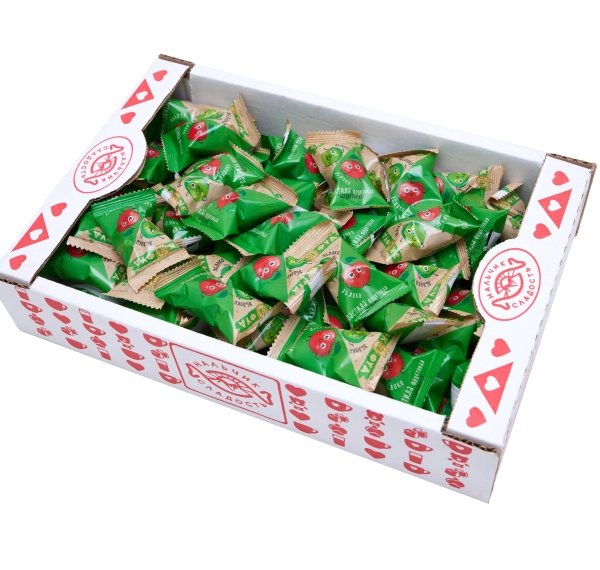 Состав: пюре яблочное, яблочный порошок, ароматизатор. Продукция не содержит ГМО. Не содержит сахар. Пищевая ценность 100 г продукта (средние значения): белков-1,4 г, углеводов- 44 г. Энергетическая ценность 100 г продукта -790кДж/190ккал.